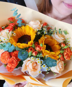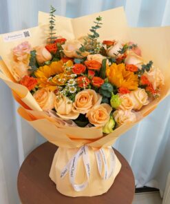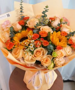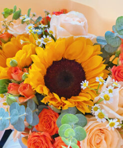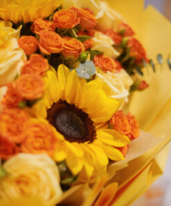 The “Citrus Sunshine” bouquet is a radiant fusion of warmth and vibrancy, designed to brighten any space and uplift spirits. Featuring cheerful sunflowers at its center, this arrangement exudes positivity and joy. Its lively colors and uplifting presence make it a joyful gift that brings warmth and happiness to every occasion.